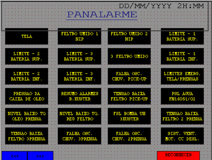 O painel atual “PAN-ALARME” apresenta repetidas falhas de indicação falsa de alarme, devido a problemas nos circuitos eletrônicos do mesmo. Por isso optamos por utilizar a IHM, minimizando falhas e até mesmo criando lista e histórico de alarmes.